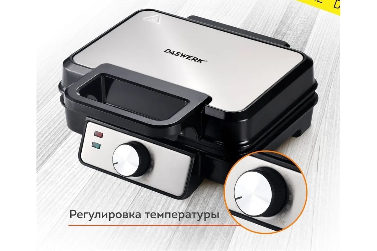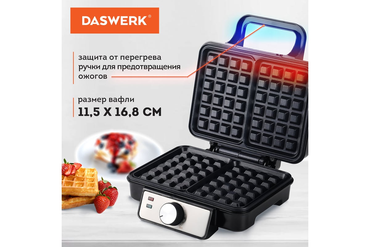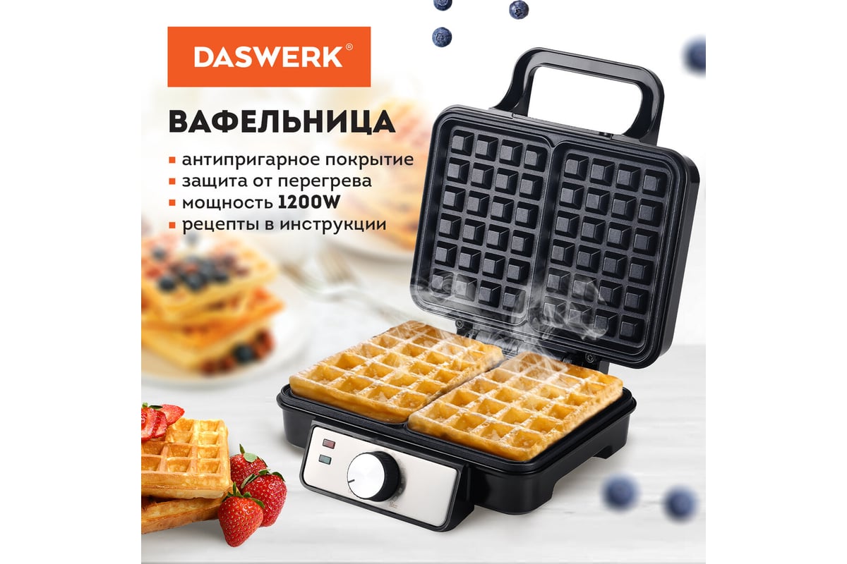 Электрическая вафельница DASWERK подходит для приготовления венских, бельгийских, овощных, сырных и других видов вафель.
