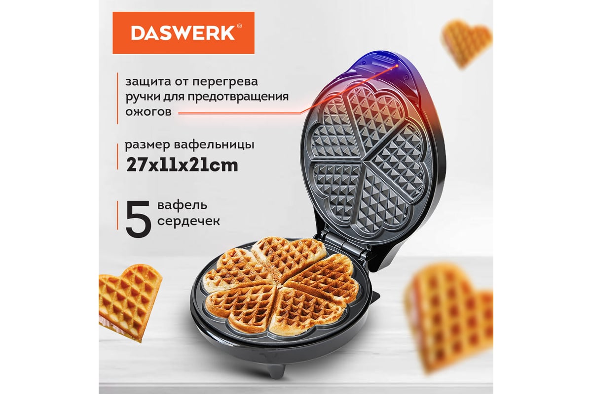 Электровафельница DASWERK WM-7 с мощностью 1200 Вт – ваш идеальный помощник для приготовления разнообразных вафель-сердечек. Будь то венские вафли, бельгийские, овощные или сырные, эта вафельница справится с любой задачей. Антипригарное покрытие и встроенный нагревательный элемент обеспечивают равномерное приготовление пяти вафель одновременно, что делает использование вафельницы удобным и быстрым.