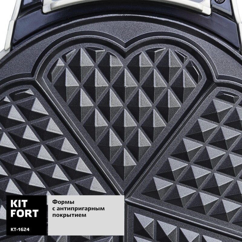 - БрэндKITFORTМодельКТ-1624Мощность1000 ВтТип управлениямеханическоеАнтипригарное покрытиедаФорма нагревательных частейвафлиФормы для готовкипластины для вафельКоличество отделений в пластине для вафель5