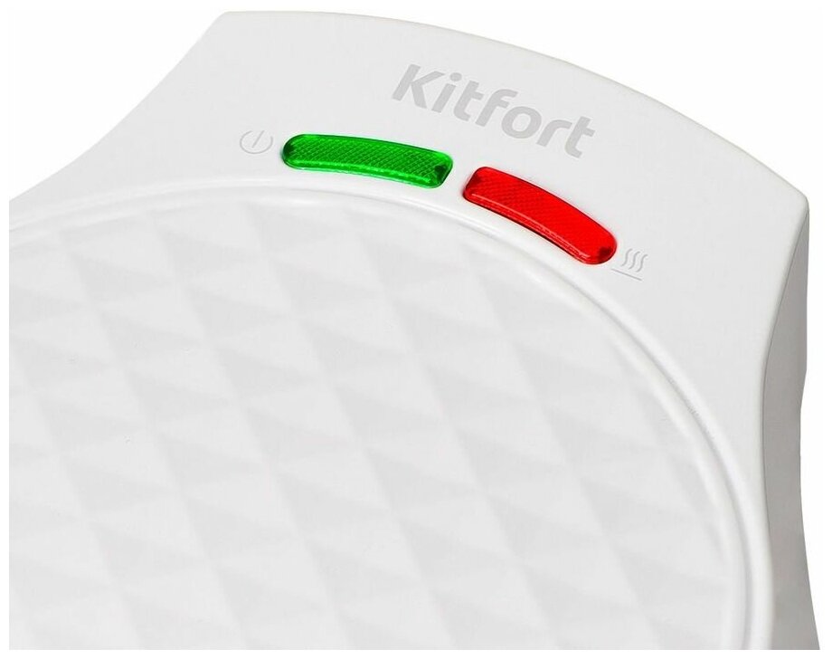 Сверху корпуса вафельница оснащена индикатором питания и индикатором нагрева. С помощью индикатора нагрева легко понять, когда вафельница готова к использованию, вам осталось лишь залить тесто и получить идеальные вафли!
