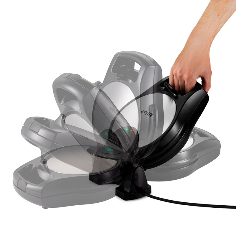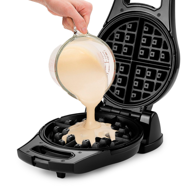Вафельница оборудована поворотным механизмом, который позволяет переворачивать вафельницу вверх дном. Таким образом, вы можете перевернуть вафлю, не открывая крышку, чтобы она лучше пропеклась.