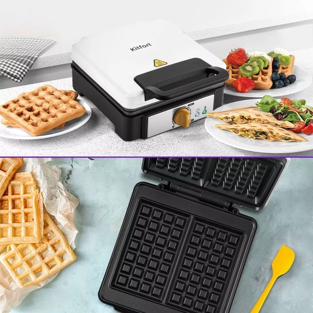 С помощью электрической вафельницы КТ-1692 можно испечь толстые бельгийские вафли. Разнообразные рецепты этого лакомства и простота приготовления сделают ваши завтраки самыми вкусными. 5 минут и золотистые вафли готовы!