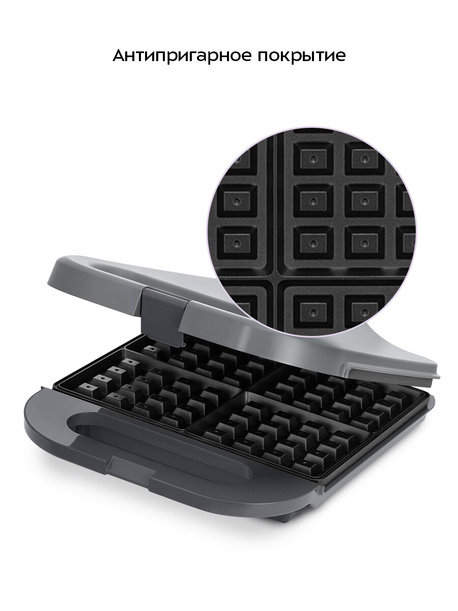 С помощью вафельницы для бельгийских вафель КТ-3636 вы сможете испечь 4 прямоугольные бельгийские вафли за один раз. Вафельница оснащена индикаторами питания и нагрева, а также термостатом для поддержания температуры панелей.