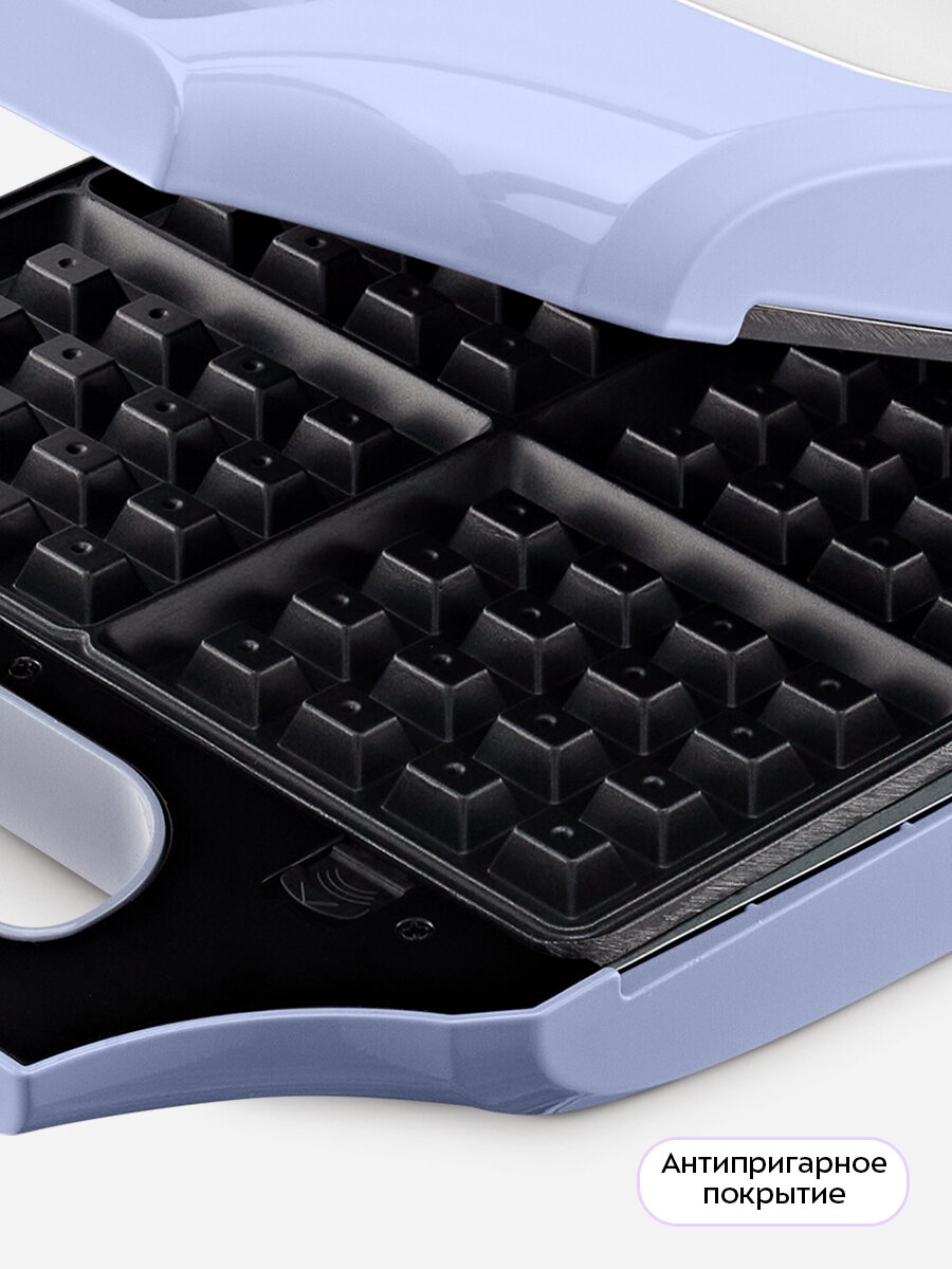 С помощью вафельницы для бельгийских вафель КТ-3643 вы сможете испечь 4 прямоугольные бельгийские вафли за один раз. Вафельница оснащена индикаторами питания и нагрева, а также термостатом для поддержания температуры панелей.