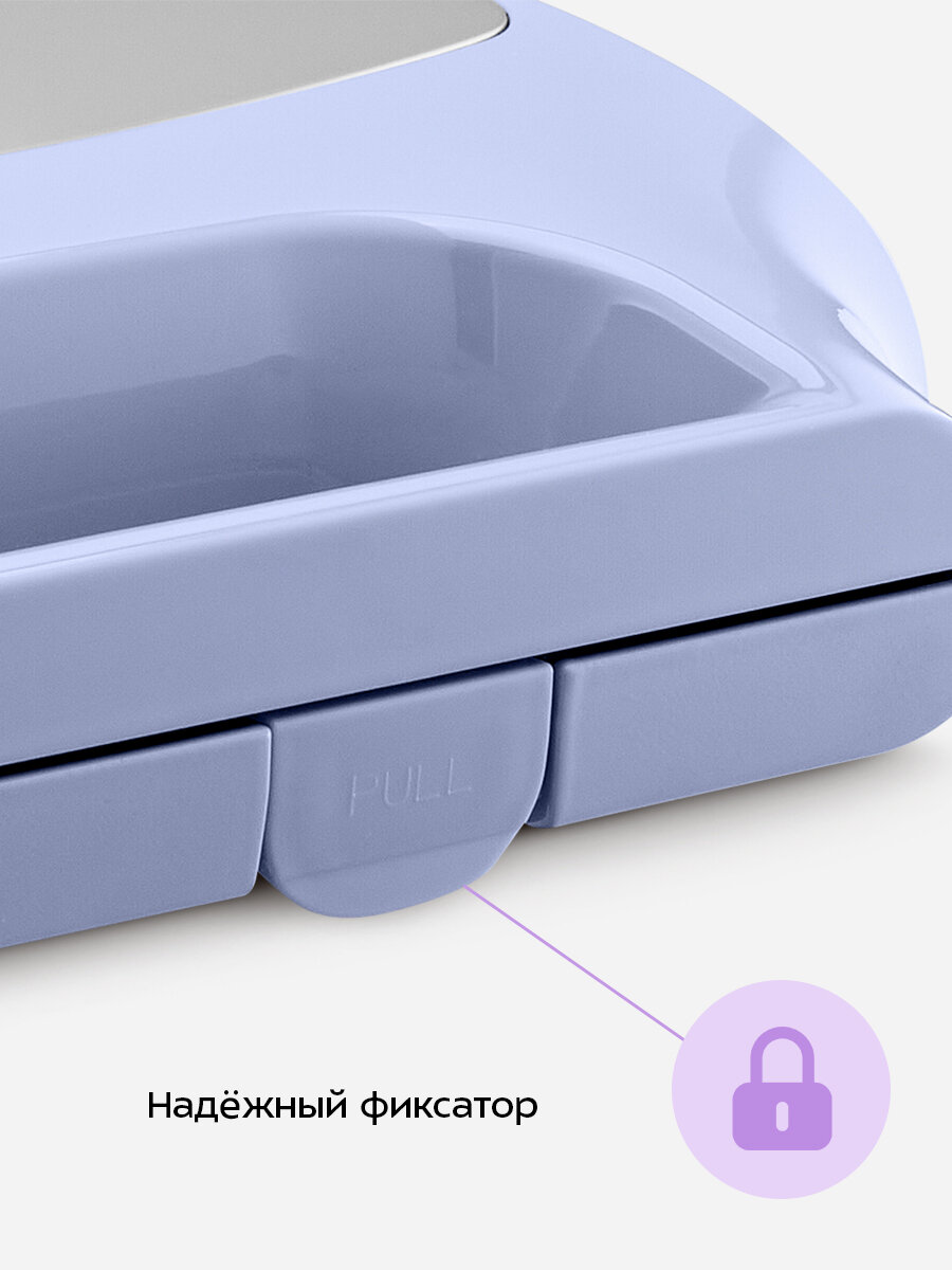 Вафельница оснащена надёжным фиксатором для удобства использования. Он обеспечивает равномерный нагрев, что влияет на качество вафель. Вы можете быть уверены, что они получатся золотистыми и хрустящими.
