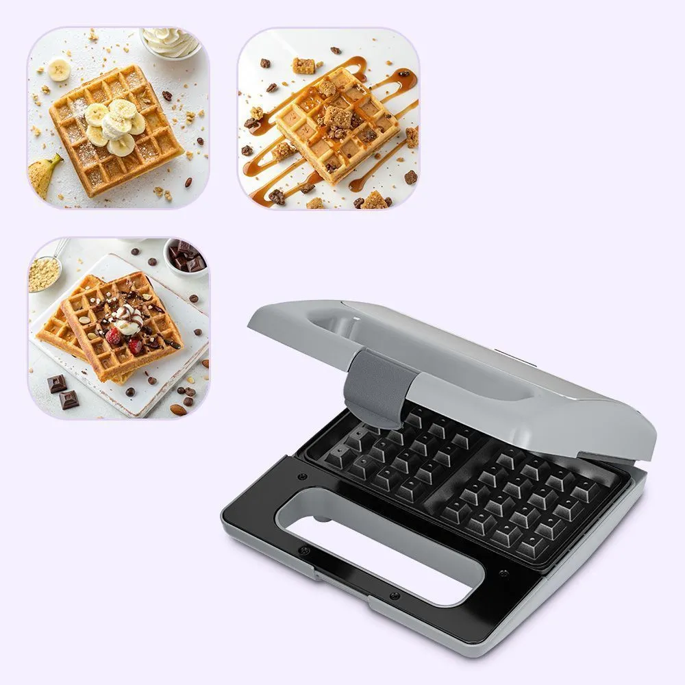 Вафельница оснащена индикатором питания, а также термостатом для поддержания температуры панелей. Вафельница имеет надёжный фиксатор для удобства использования и равномерного нагрева.