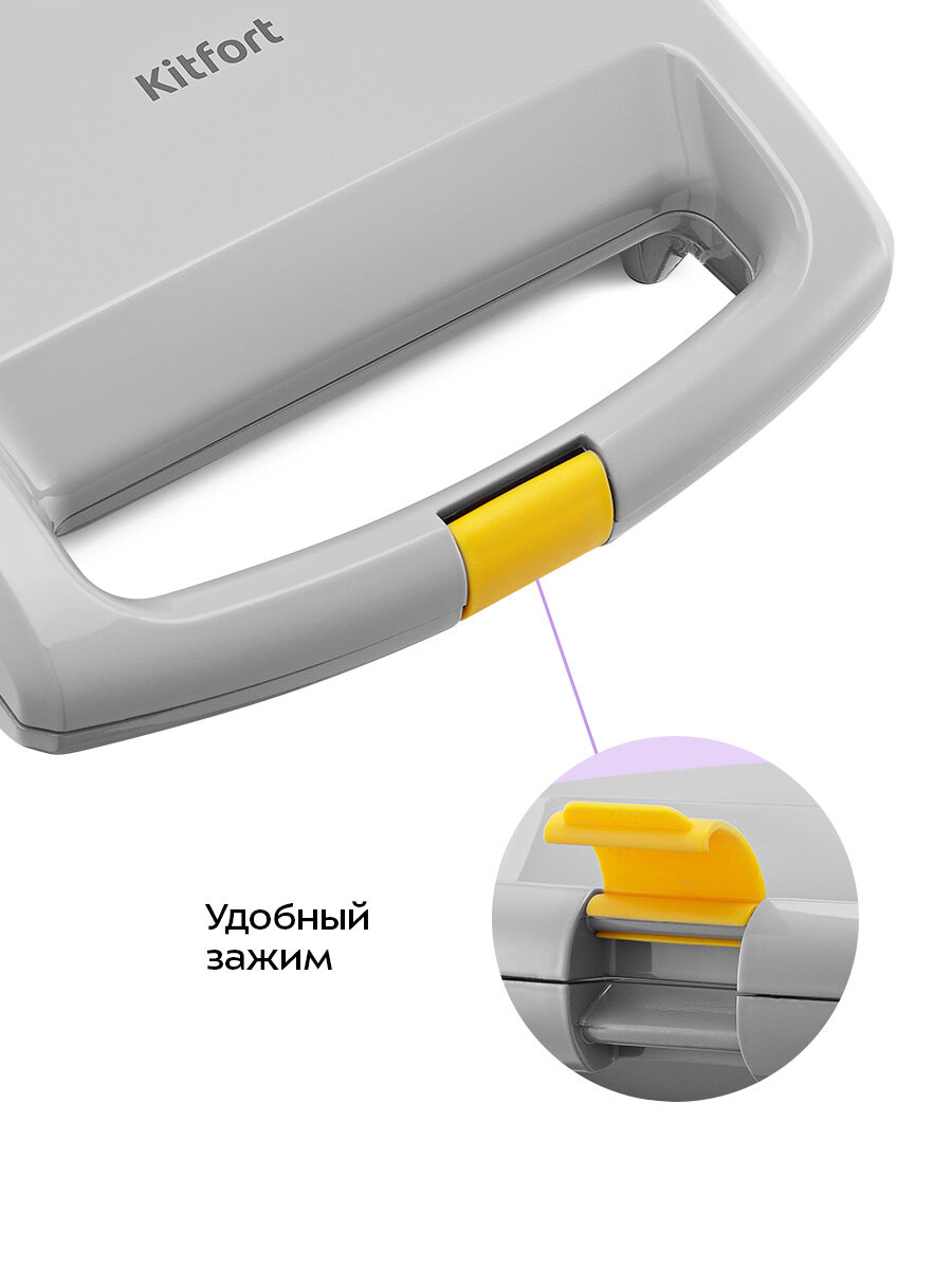 Зажим на ручке плотно закрывает вафельницу — безопасно при готовке, удобно в хранении и переноске.