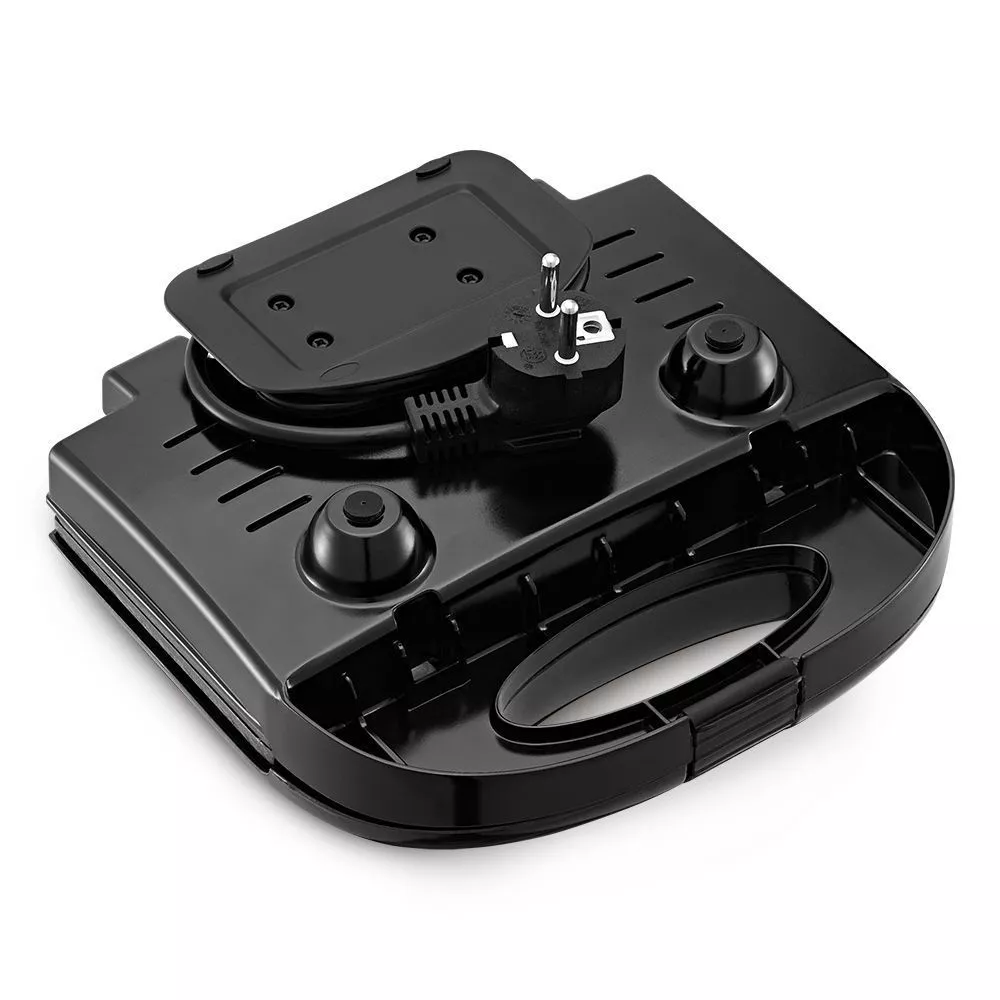 Корпус выполнен из термоустойчивого пластика. Формы покрыты антипригарным покрытием, они быстро нагреваются и обеспечивают равномерное пропекание теста с двух сторон. Фиксатор на ручке удерживает крышку вафельницы в закрытом состоянии.