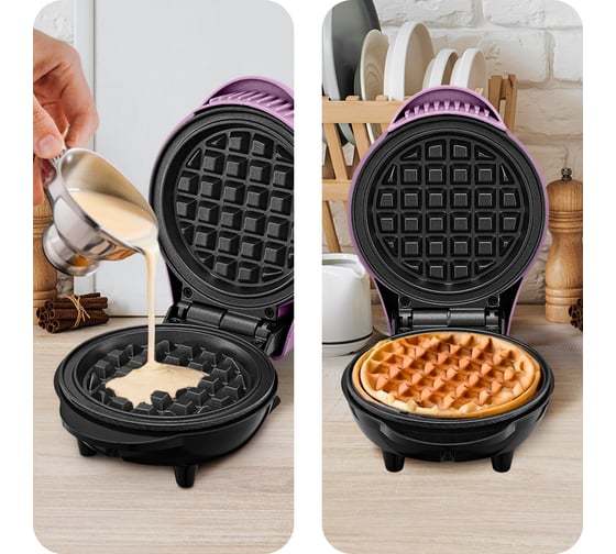 С помощью электрической вафельницы КТ-3685 вы сможете печь круглые бельгийские вафли. Вафельница рассчитана на приготовление 1 вафли за один раз. Компактный размер вафельницы позволяет экономить место на кухне. Также небольшой размер вафельницы облегчает уход за прибором, поэтому вы сможете готовить вафли с удовольствием даже на завтрак, когда времени на приготовление и уборку мало.