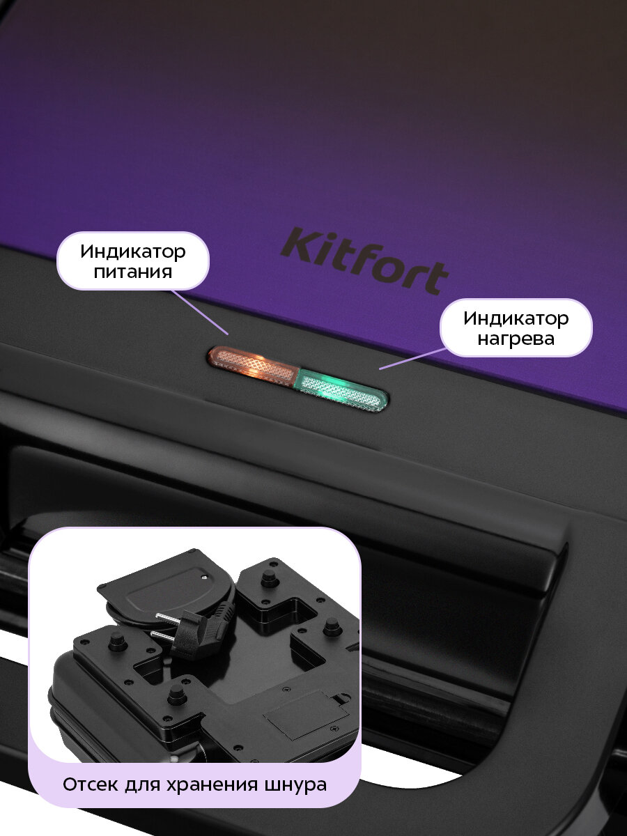 Благодаря индикаторам питания и нагрева вы всегда будете знать, что прибор подключён к сети и готов к работе на нужном режиме. На дне прибора есть отсек для хранения шнура питания, что обеспечивает удобное хранение устройства.