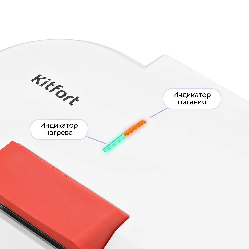 Вафельница оснащена индикаторами питания и нагрева, а также термостатом для поддержания температуры панелей. Во время готовки вафель термостат включает и отключает нагрев для поддержания температуры, что отражается в загорающемся и гаснущем индикаторе.