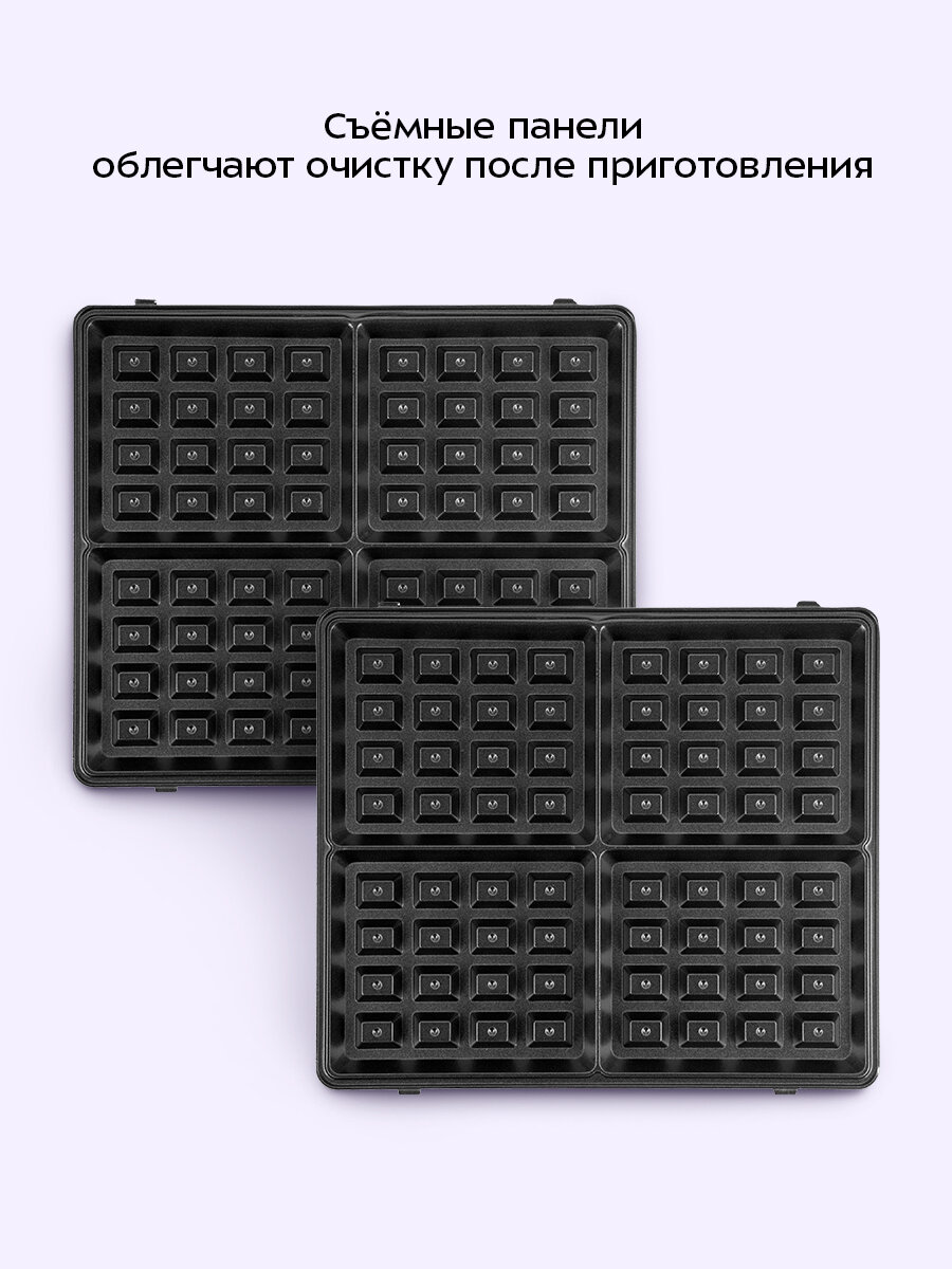 Прорезиненные ножки не дают прибору скользить по столу во время готовки. Стильный универсальный дизайн вафельницы впишется в любой кухонный интерьер. Разнообразные рецепты и простота приготовления сделают ваши блюда вкуснее!