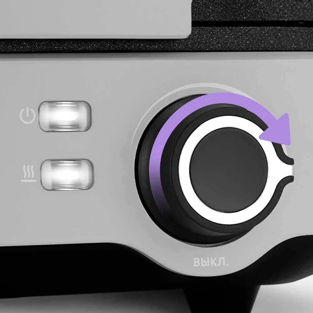 Регулятор является ручкой термостата. Термостат обеспечивает возможность плавно регулировать температуру и поддерживать её в процессе приготовления. Рядом с регулятором нанесена шкала.