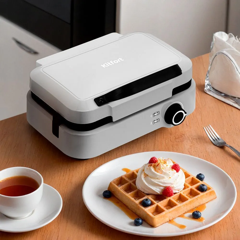 С помощью вафельницы КТ-4699 вы сможете испечь 2 бельгийские вафли за один раз. Данная модель оснащена регулятором температуры, что позволит вам настраивать температуру приготовления вафель.