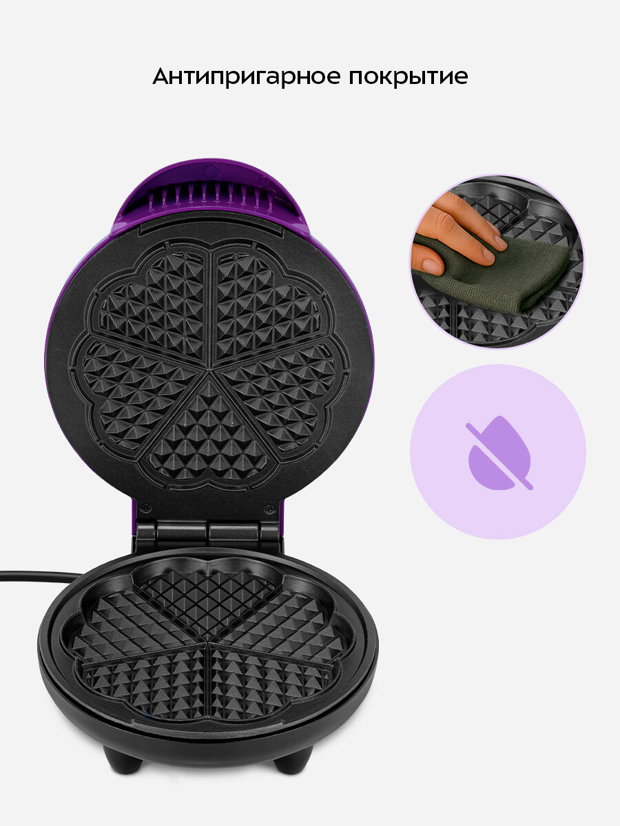 Вафельница КТ-5610 позволит вам без труда приготовить нежные и ароматные вафли в форме цветка. Она не только удобна в использовании, но и позволяет проявить креативность. При желании вы можете разделить готовую вафлю-цветок на пять небольших сердечек.
