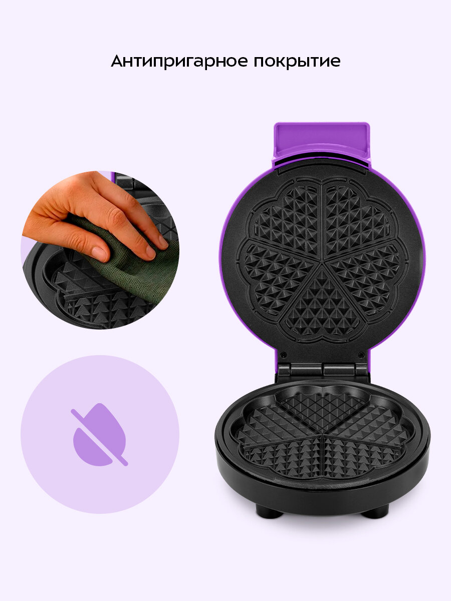 Благодаря антипригарному покрытию тесто не прилипает к панелям, что упрощает процесс приготовления и позволяет делать идеальные вафли без лишних усилий. Также антипригарное покрытие позволяет готовить без масла и облегчает чистку панелей.