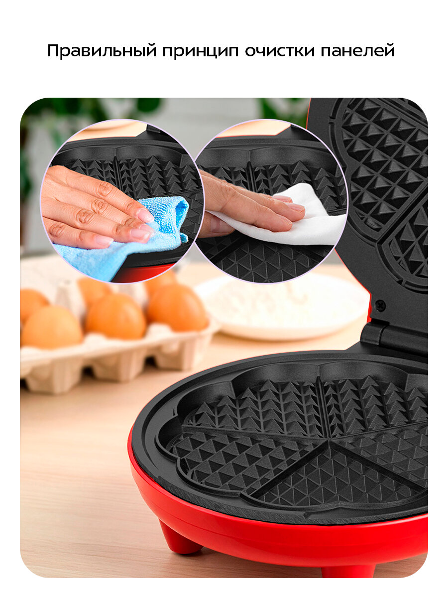 Очищайте панели бумажными полотенцами, удаляя остатки теста. Затем протрите мягкой влажной тканью. При сильных загрязнениях используйте немного мягкого моющего средства. Избегайте абразивных средств, чтобы не повредить антипригарное покрытие.