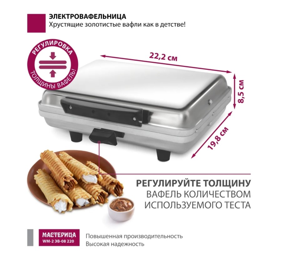 Вафельница Мастерица WM-2 ЭВ-0,8/220. Хрустящие золотистые вафли, как в детстве! Можно регулировать толщину вафель!