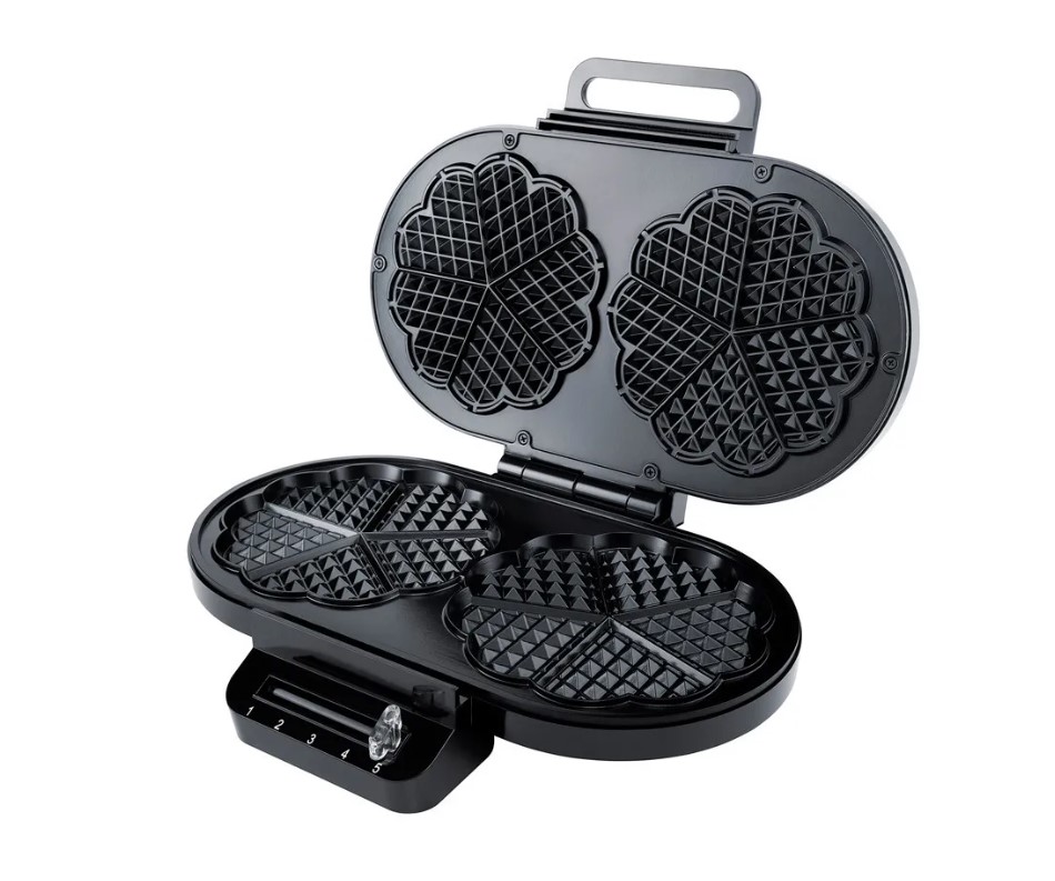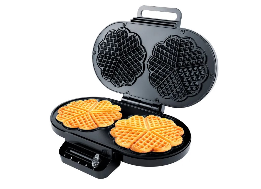Мощность электровафельницы Steba WE 2 составляет 1400 Вт. На рабочих поверхностях есть антипригарное покрытие, которое не позволяет тесту прилипать. После использования пластины легко отмоются. Корпус сделан из прочных и практичных материалов — пластика и нержавеющей стали.