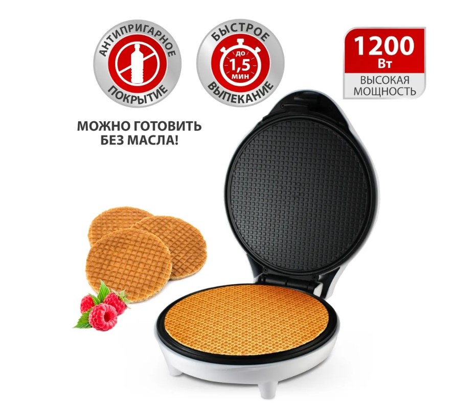 Мощность вафельницы 1200 Вт позволяет быстро разогреть рабочую поверхность прибора, а индикатор нагрева и готовности к работе подскажет, когда можно начинать процесс готовки.