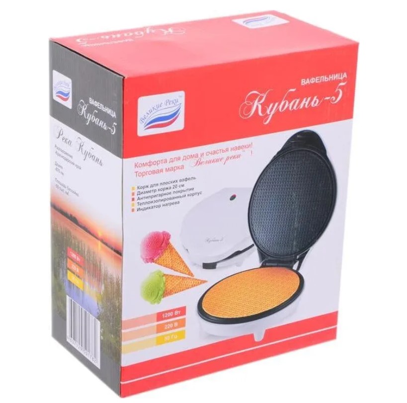 Вафельница электрическая Кубань-5 имеет компактный размер и имеет место для намотки шнура, благодаря чему не займет много места на вашей кухне, а хранить прибор можно как в горизонтальном, так и вертикальном положении. Вафельница Кубань-5 может стать отличным подарком для любой хозяйки!