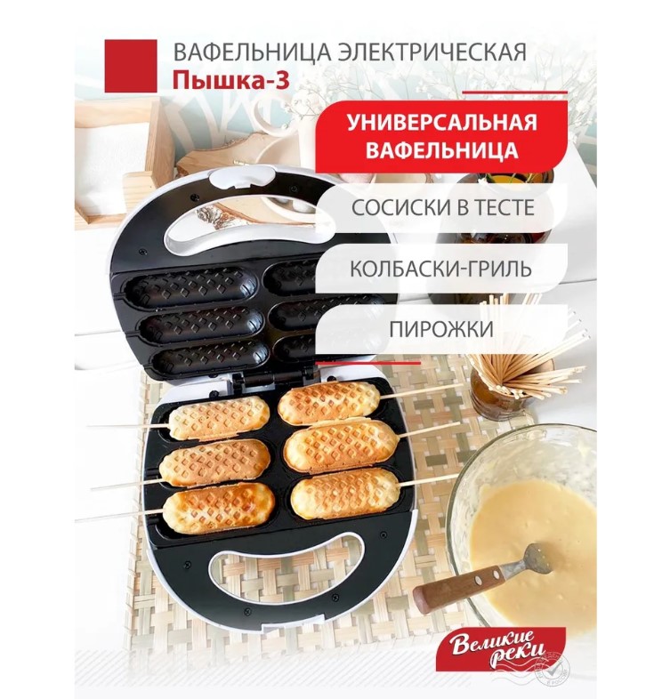 Прибор для приготовления хот-догов с 6 полуформами для выпечки сосисок в тесте.