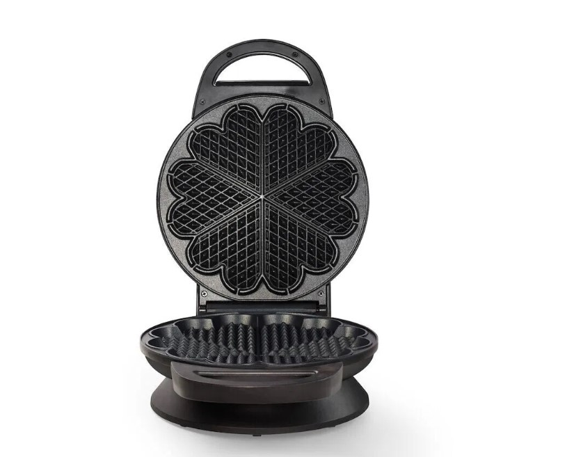 Готовит 6 больших вафельных сердечек, на литой алюминиевой пластине с антипригарным покрытием