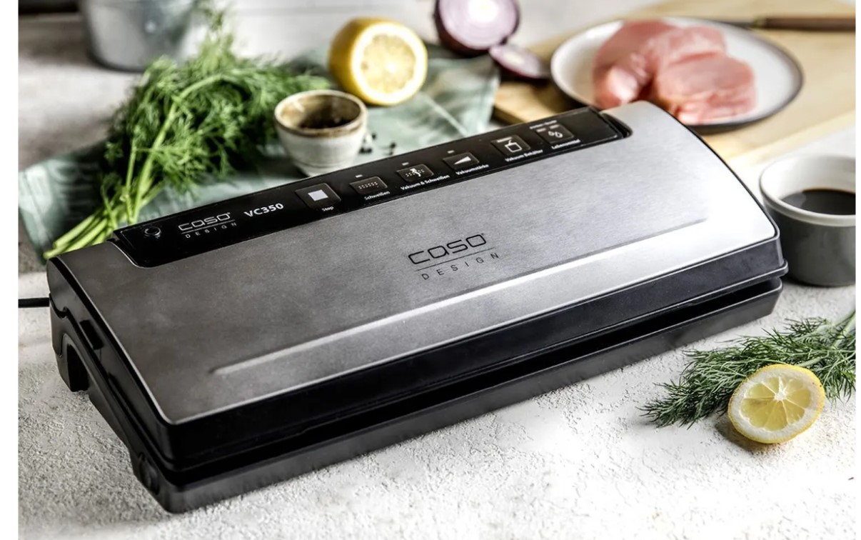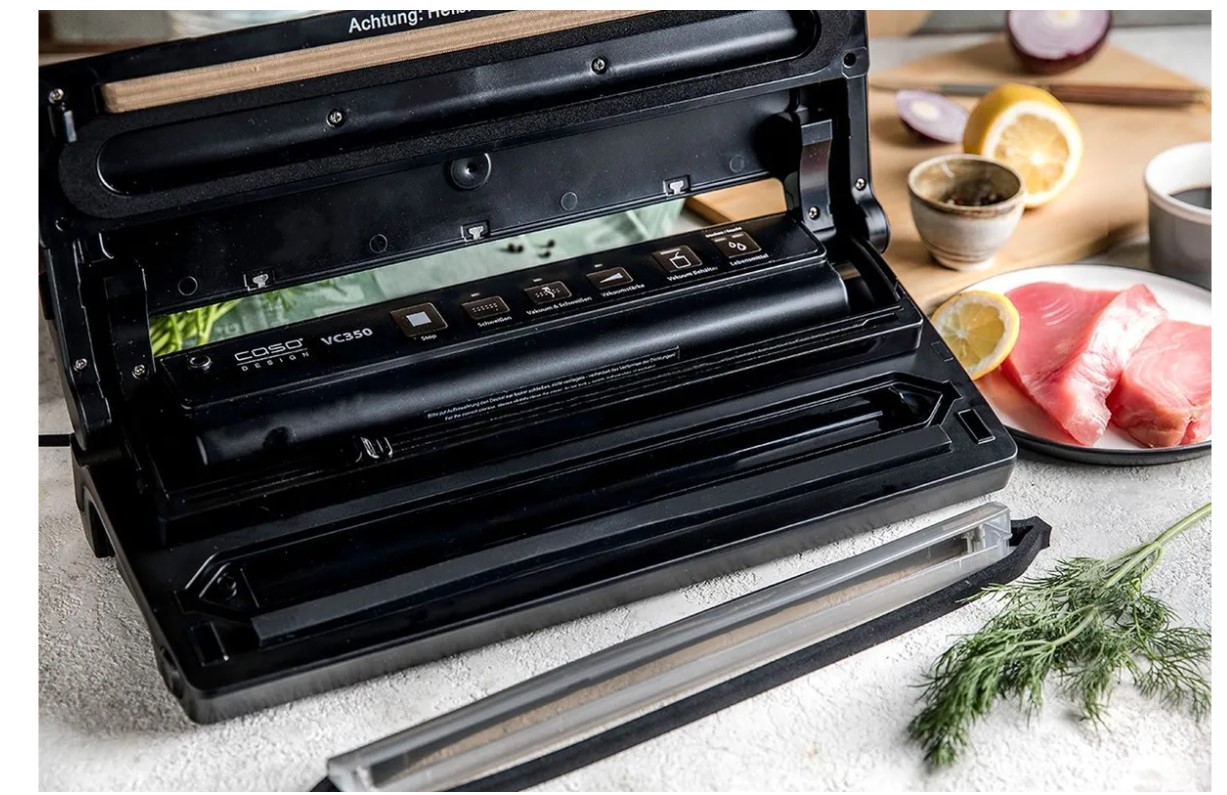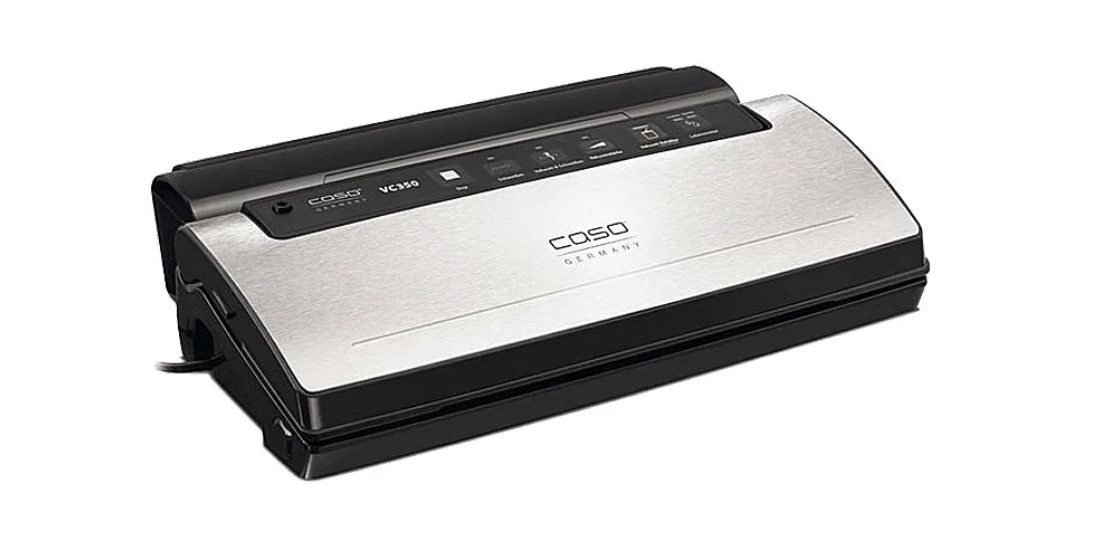 CASO VC 350 - вакуумный упаковщик для надежного хранения пищевых продуктов (как мяса и рыбы, так и овощей и фруктов) без потери их питательных свойств. Полностью автоматическая система вакуумирования обеспечивает оптимальную свежесть упакованных продуктов. Прибор оснащен двойным сварочным швом с электронным контролем его температуры. В комплекте также встроенный резак для пленки и бокс для рулонов.