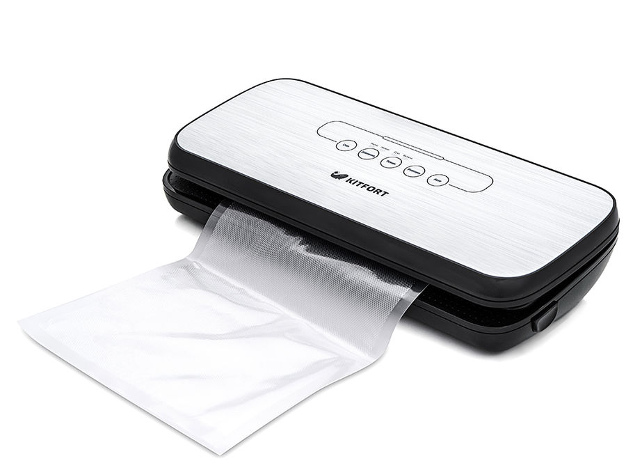 Вакууматор Kitfort КТ-1502 современный прибор, призванный увеличить сроки хранения пищевых продуктов. Продукты, упакованные под вакуумом, сохраняют свежесть и не портятся существенно дольше по сравнению с обычными условиями хранения.