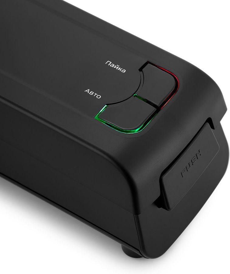 Прибор может работать в 2 режимах. При нажатии кнопки «Авто» вакууматор автоматически откачивает воздух из пакета, а затем запаивает его. А с помощью кнопки «Пайка» устройство запаяет пакет без вакуумирования.