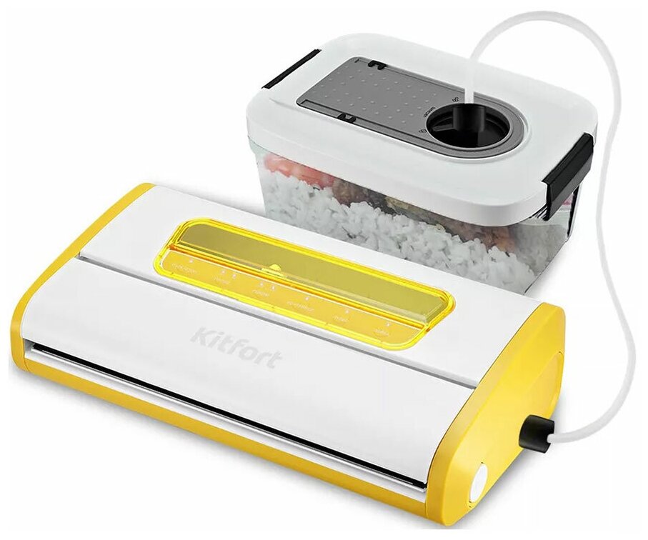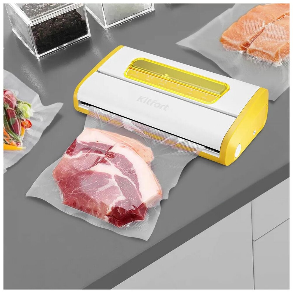 Вакууматор Kitfort КТ-1518 призван обеспечивать долгие сроки хранения ваших любимых продуктов. Продукты, упакованные под вакуумом, сохраняют свежесть и не портятся существенно дольше по сравнению с обычными условиями хранения.