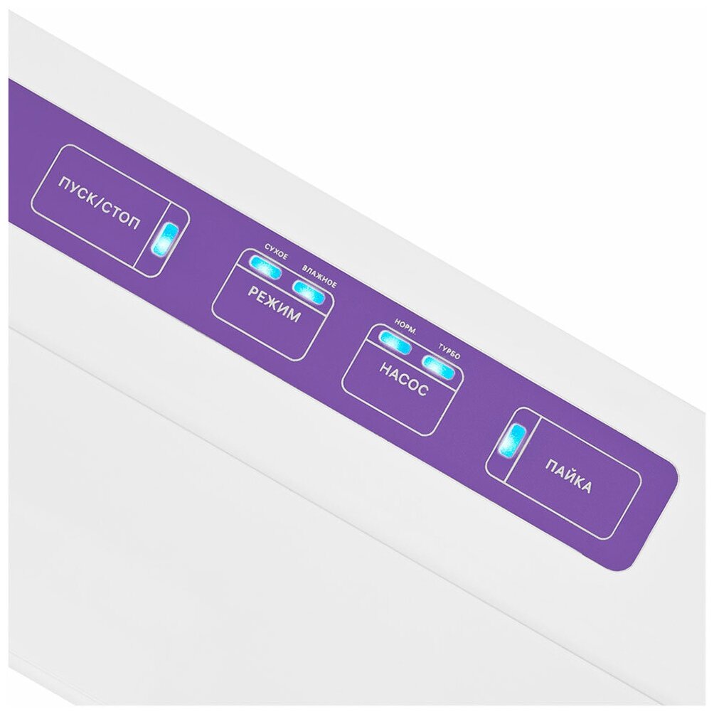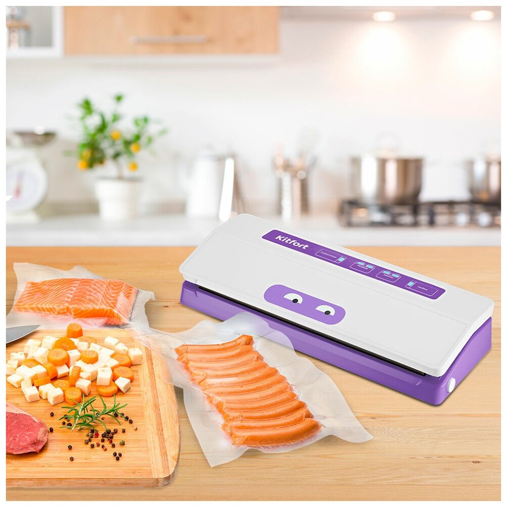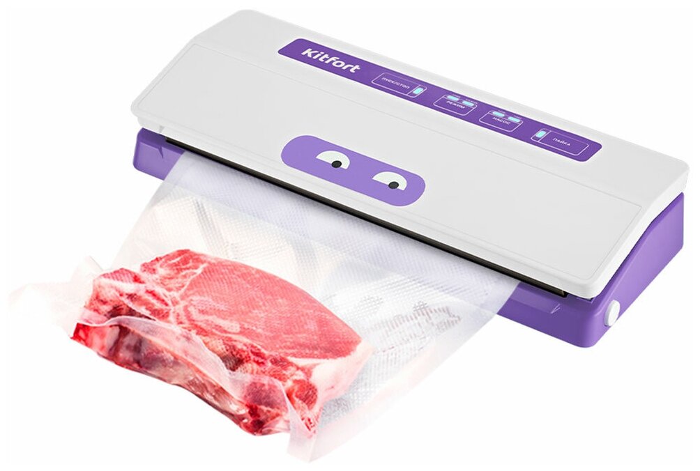 В KT-1523 есть режимы для вакуумирования сухих, влажных или мягких продуктов. Прорезиненные ножки делают устройство более устойчивым и не дают скользить по столу во время работы.