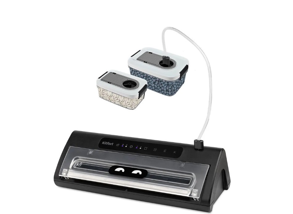 У устройства можно активировать режим откачки воздуха из контейнеров. Контейнеры в комплектацию не входят.Электропитание