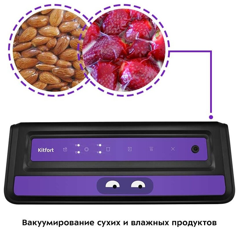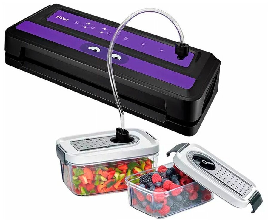 У KT-1531 есть режимы для вакуумирования сухих, влажных и мягких продуктов. Отдельный режим запечатывания позволит вам запечатать пакет без предварительной откачки воздуха. Понятная световая индикация сообщит о включении, смене и окончании выполняемого действия. Для вакуумирования контейнеров в КТ-1531 предусмотрен отдельный режим «Контейнер» — для откачки воздуха из емкостей. Прорезиненные ножки делают устройство более устойчивым и не дают скользить по столу во время работы.