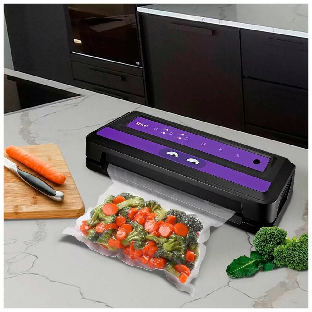 Вакууматор — устройство для вакуумной упаковки продуктов. Вакуумирование позволяет защитить от пыли, грязи, сохранить аромат и продлить сроки годности пищевых продуктов. Такой метод хранения уменьшает риск развития бактерий, которые появляются благодаря взаимодействию пищи с воздухом. Удаление воздуха из пакета гарантирует замедление процессов брожения, окисления и испарения, позволяя сохранить приятный внешний вид и качество самых разных продуктов питания.