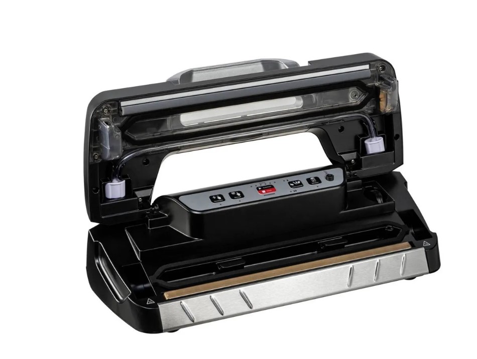Вакууматор оснащён удобной панелью управления с функциональными кнопками и индикаторами работы. Вы легко выберете ручной или автоматический режим, чтобы максимально качественно упаковать разные по структуре продукты. Для этого можно использовать рулонную плёнку или готовые пакеты. Высококачественный поршневой насос откачивает до 9 л в минуту, поэтому вы потратите на фасовку одной порции всего несколько секунд.