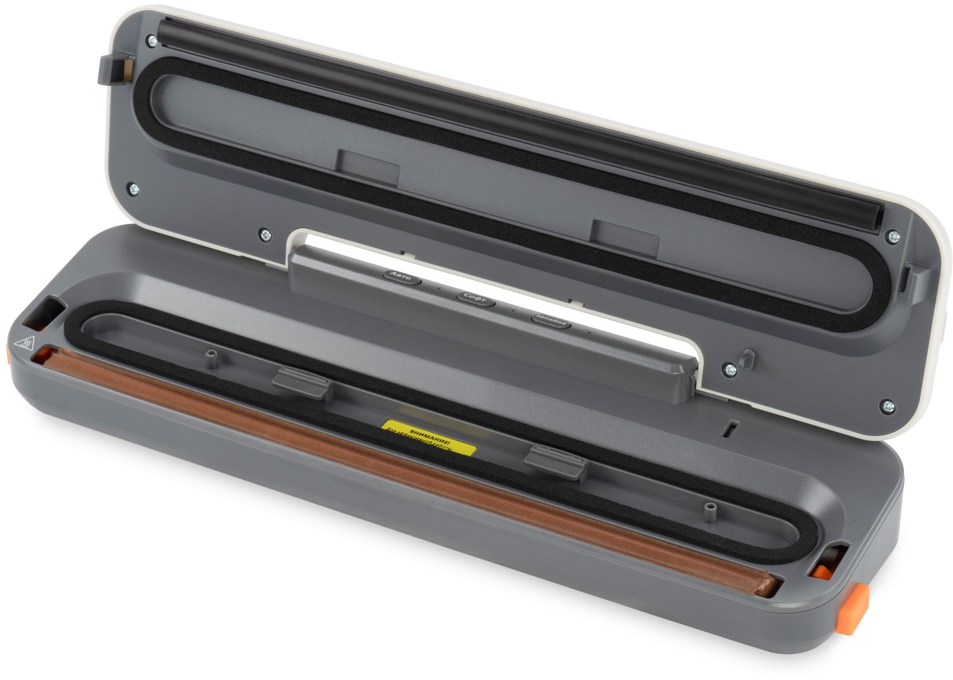 4 программы, откачака 4,5л/минуту, макс. давление -65Kpa, шум 70dB, встроенный нож, насадка для вакуумации контейнеров, 10 пакетов 20*30см в комплекте.