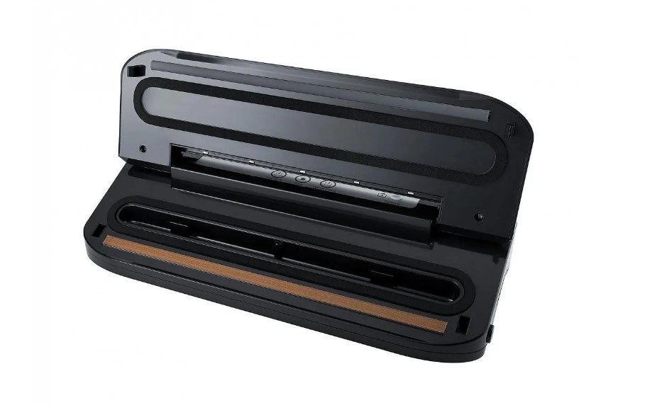 Вакууматор имеет встроенный нож для рулонов. Благодаря ножу, вы можете самостоятельно изготовить пакеты любой длины. Резак представляет собой ползунок, который нужно просто потянуть в противоположную сторону до конца, чтобы отрезать кусочек пленки. Резак находится над панелью управления.