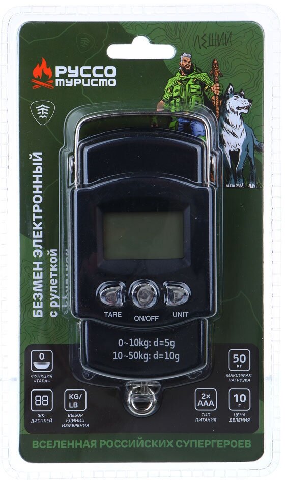 Безмен электронный с рулеткой РУССО ТУРИСТО с высокой точностью взвешивания: 1-10 кг (+/-5 г), 10-50 кг (+/- 10 г) - прекрасно подойдет для взвешивания багажа путешественников, для рыбаков, охотников и в быту. Компактные размеры и небольшой вес делают электронные весы-безмен очень удобными в использовании и для ношения с собой.