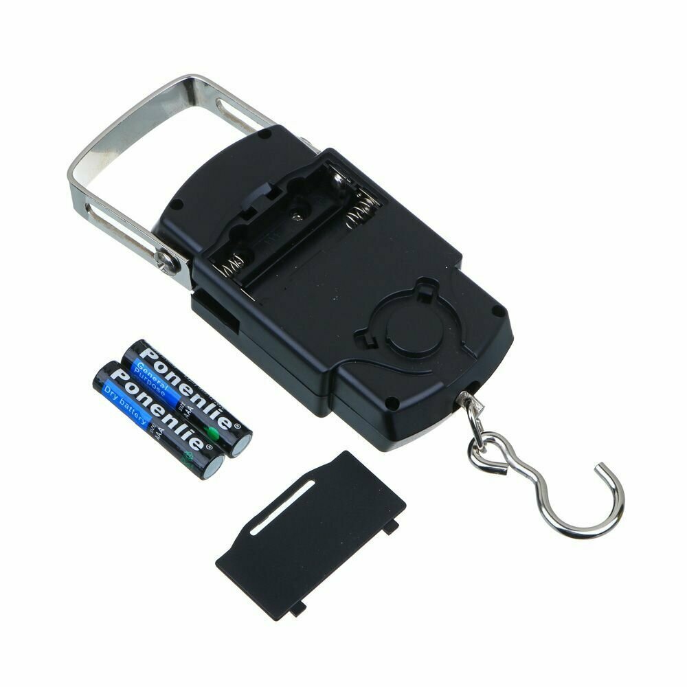 Электронный безмен работает от 2 стандартных AAA батареек и поэтому легко может использоваться даже в местах, где недоступна электроэнергия.