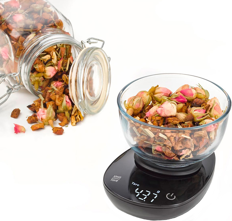 В комплект поставки входит чаша для взвешивания из матовой нержавеющей стали.