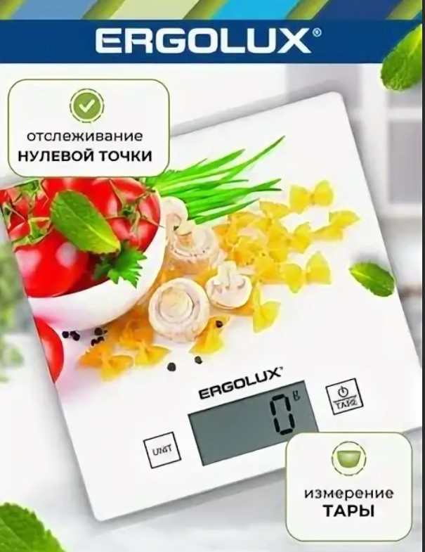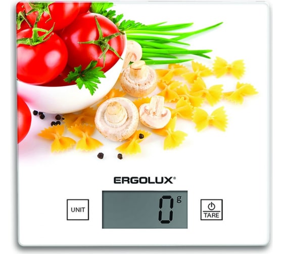 Кухонные весы ERGOLUX ELX-SK01-С36 паста, томаты и грибы, до 5 кг, 150х150 мм 14360 используются для определения веса сухих, жидких и сыпучих продуктов. Точность измерения - 1 грамм.