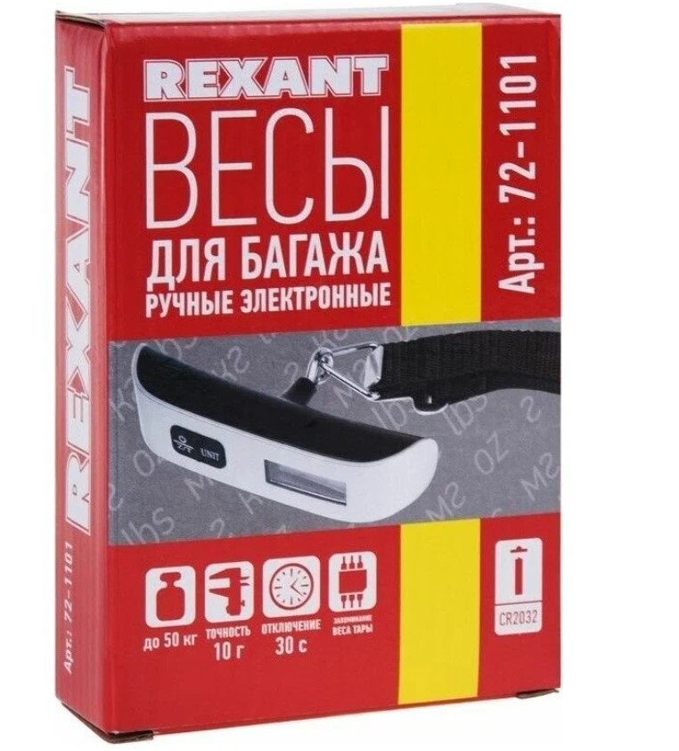 Безмен для багажа с функцией термометра REXANT - это портативные электронные весы, которые позволяют с удвоенной точностью проводить взвешивание предметов.