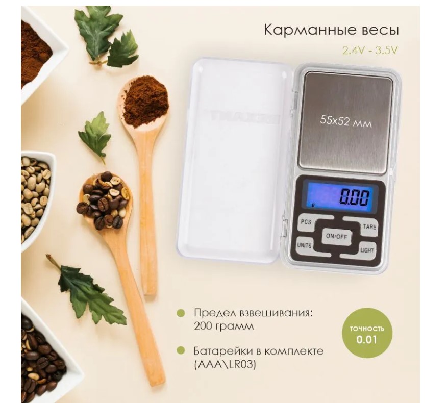 Профессиональные электронные мини-весы REXANT карманного формата с рабочим диапазоном от 0,01 до 200 грамм - это высокоточный прибор для взвешивания мелких предметов. Применяется в различных лабораторных работах, при моделировании, коллорировании и при других различных бытовых задачах. Весы имеют конструкцию, напоминающую блокнот. Откидная крышка надежно предохраняет механизм от повреждений.