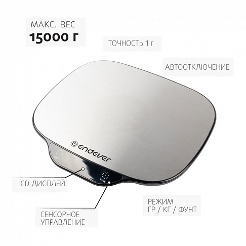 Особенности и дополнительные функции: Сиcтема мер: г/кг/фунт Современый удобный дизайн LCD-дисплей Функция обнуления веса тары Индикация слабого заряда батареи Автовыключение Индикация слабого заряда батареи Сенсорное управление