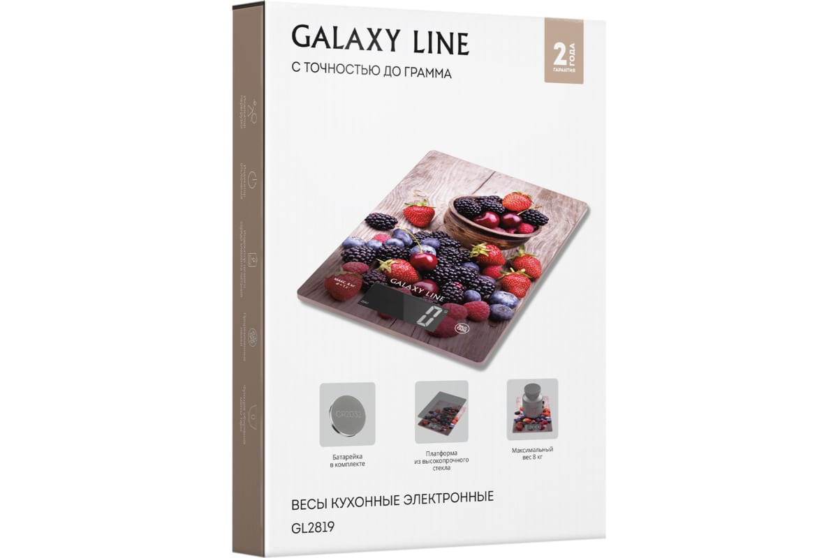 Электронные кухонные весы – это современный прибор для взвешивания продуктов. Данная модель имеет сверхточную сенсорную систему датчиков, поэтому цена деления в них всего 1 грамм. Максимально допустимый вес продуктов – 8 кг. Прибор имеет достаточно широкий диапазон единиц измерений продуктов: грамм, килограмм, фунт: унция и миллилитр (с выбором типа жидкости). При приготовлении сложных блюд с большим количеством ингредиентов, пригодится функция последовательного взвешивания. Дополнительный комфорт обеспечивает наличие функции обнуления массы тары. Наглядный и легко читаемый дисплей с подсветкой позволяет легко считывать результаты в любых условиях освещения. Оригинальный дизайн платформы превращает весы в заметную деталь интерьера кухни и вдохновляют на новые гастрономические шедевры. Платформа из высокопрочного стекла легко очищается от грязи и долговечна. Прорезиненные ножки надежно фиксируют весы на рабочей поверхности, препятствуя скольжению. Кухонные весы GALAXY LINE GL2819 помогут точно следовать рецепту и всегда иметь предсказуемый результат при приготовлении выпечки, соусов и других сложных блюд.