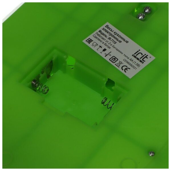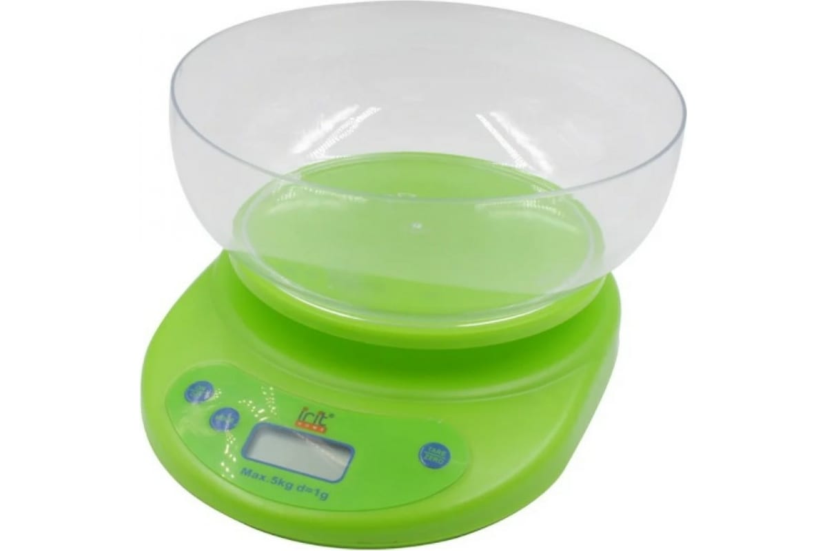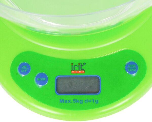 Кухонные электронные весы IRIT зеленые IR-7119 подходят для измерения ингредиентов весом до 5 кг. Функция тарокомпенсации позволяет не учитывать в результатах взвешивания массу посуды, в которой находятся продукты. Индикатор перегрузки указывает на превышение максимальной нагрузки весов. Дискретность 1 г. Съемная чаша объемом 300 мл. Работают от 2 батареек АА (в комплекте).