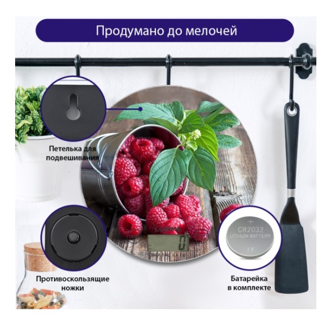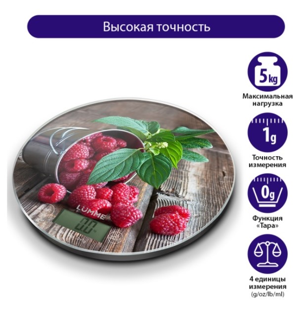 Яркие кухонные весы с красивой и прочной поверхностью из закаленного стекла, большим жидкокристаллическим дисплеем, функцией «ТАРА». Весы обеспечивают надежное взвешивание продуктов массой до 5 килограммов с точностью до 1 грамма и способны работать в различных единицах измерения (граммы, килограммы, унции, фунты, миллилитры). Функция «ТАРА» позволяет не учитывать массу посуды при взвешивании продуктов, а индикаторы перегрузки и замены батареи сделают работу весов бесперебойной в течение длительного времени. Для экономии заряда литиевой батарейки (входящей в комплект поставки) весы отключаются автоматически, если не используются. Кухонные весы – отличный помощник для тех, кто любит готовить точно по рецептам.