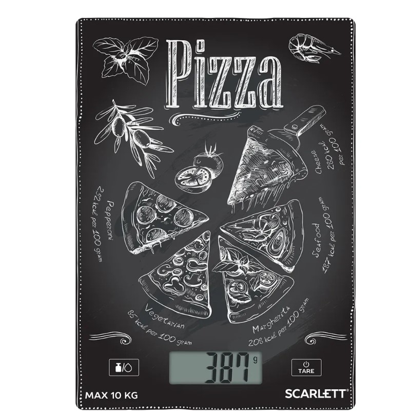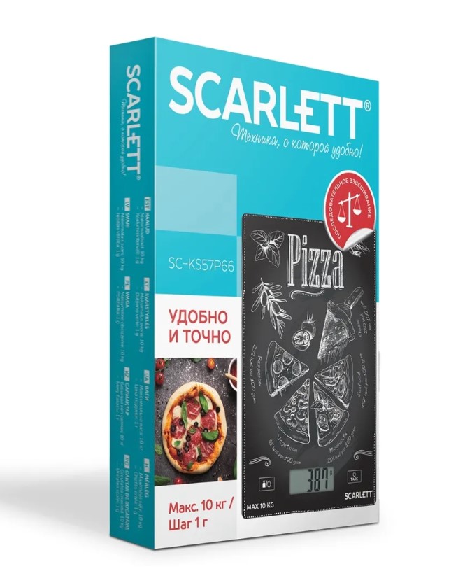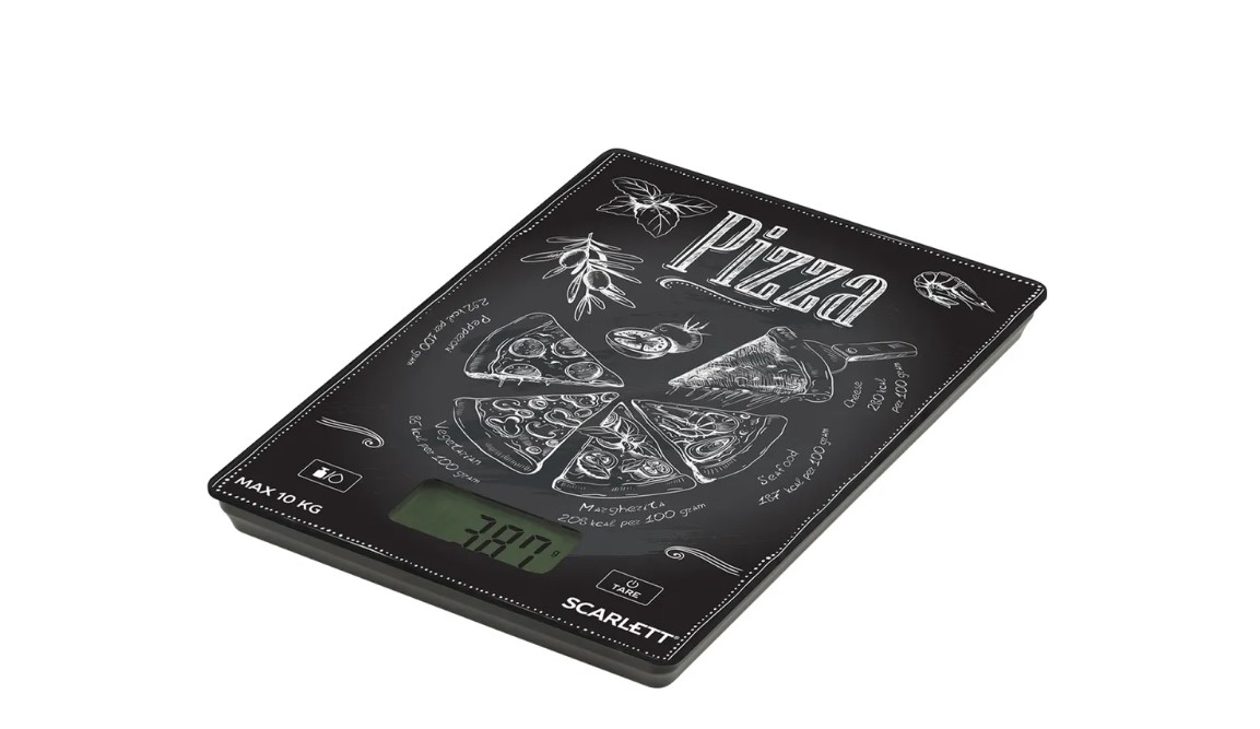 Платформу весов Scarlett SC-KS57P66 украшает современный принт, благодаря которому они станут заметным акцентом на вашей кухне. Устройство выдерживает нагрузку до 10 кг, цена деления составляет всего 1 г, так что вы сможете использовать эту модель и в период сезонных заготовок, и при ежедневном приготовлении блюд.