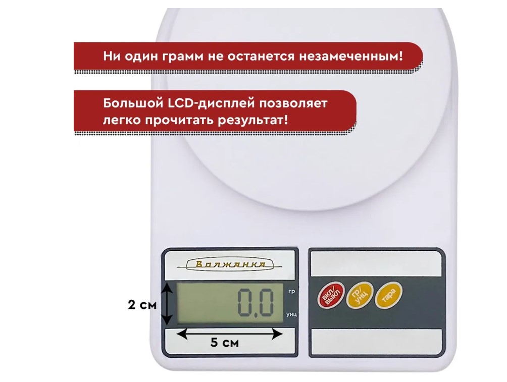 Кухонные электронные весы незаменимый помощник современной хозяйки. Они помогут точно взвесить любые продукты и ингредиенты для приготовления любимого блюда. Кроме того, весы Волжанка добавят удобство людям, соблюдающим диету. Они помогут максимально точно рассчитать размеры порций.